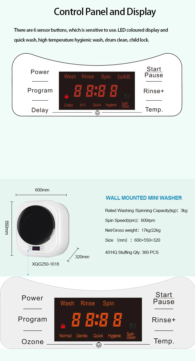 Durable XIAOYA 2.5kg Wall-Mounted Front-Load Washer